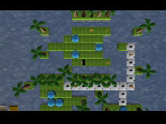 There are gaps between islands so you have to push the big blue chips into the holes and make a solid path where you can walk.